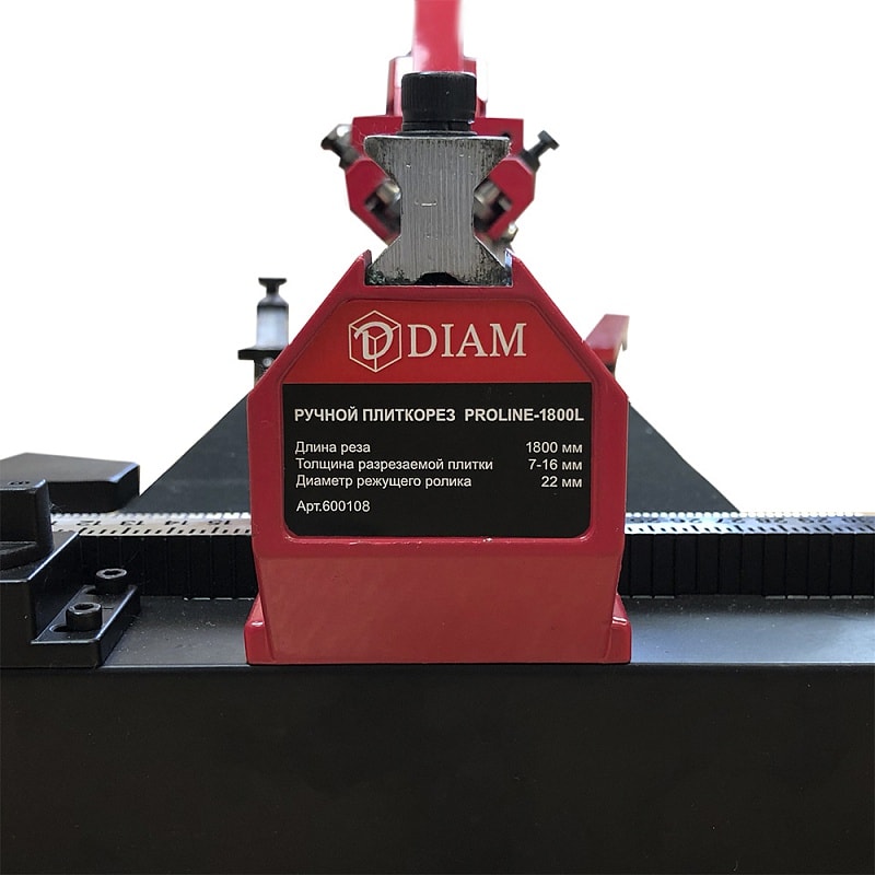 Достойный ручной плиткорез – DIAM ProLine 1800L, который предназначается для продольной и диагональной резки. Он отличается в работе удобством, отсутствием брака и качеством кромки. Устройство профессионально работает с прямой резкой керамики одинарного и двойного обжига, каменно – керамических изделий. Осуществляется резка – от себя. Облегчает работу на станке лазерный указатель реза, а точная линейка и угломер делает скол под необходимым углом.