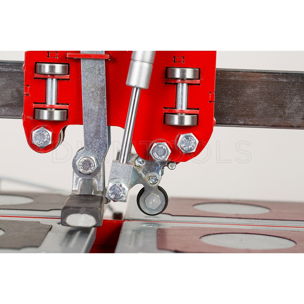 Оборудован усиленной металлической платформой, сменным твердосплавным режущим элементом. Материал станины сделан из никелированной стали с порошковым защитным покрытием. Плитка не скользит по поверхности за счет расширенной амортизирующей площадкой с обрезиненной поверхностью.
