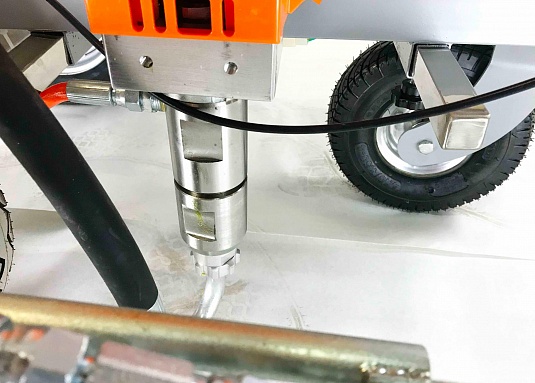 - Для более комфортного нанесения разметки агрегат оборудован универсальным креплением краскораспылителя.