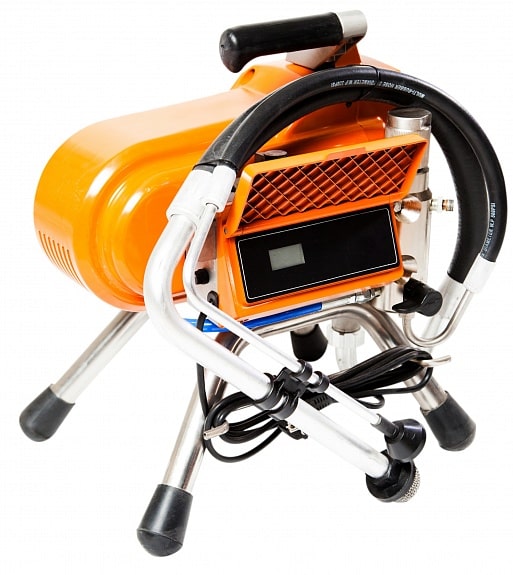 Мощный аппарат, заявлена реальная производительность! Включаю через стабилизатор ресанта - проблем по электрике и плате не было никаких! Тянет все, кроме шпатлевки! Работаем по огнезащите!