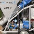 Штукатурная машина Kaleta К-4/230 отличается характерной компоновкой, напоминающей детскую коляску. Кузов (бункер) располагается впереди, панель управления вынесена к ручкам. Габариты невелики, что позволяет использовать машину в ограниченных пространствах.