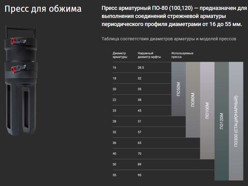 - обжимающий пресс компактный инструмент для обжима арматуры с муфтами;